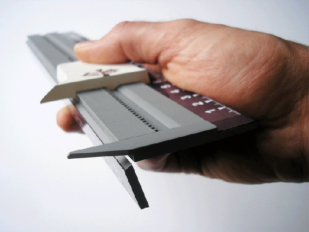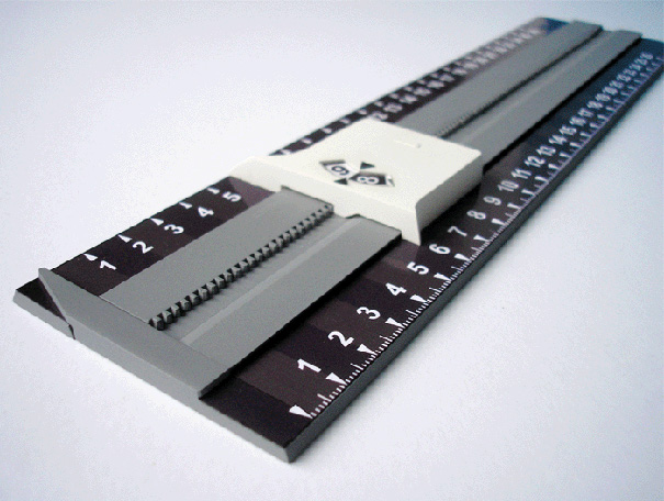 I have been reading message boards for people who suffer from visual impairments and one discussion topic I found was how difficult it is to use rulers. The problem, especially with centimetres and millimeters, is that while the numbers on a ruler can be made bigger, the unit of measurement is fixed, so reading millimeters if you have problems with your sight becomes difficult. Check out the New Rule. The solution is to have bigger numbered, higher contrast measurement bars that a sliding pointer runs along, displaying the millimeter measurement as numbers on a wheel inside the sliders housing. An arm inside the slider rests against the track and clicks each time it passes over a tooth in the track giving tactile and audible feedback of each millimeter although the designer admits the track would need more teeth than the prototyped version shown here. The second innovation is one edge folds over on a hinge. This turns it into a calliper so that accurate measurements can be taken quickly and easily. This was intended to make it easier for someone with poor sight to measure marks on paper as well as objects. Designer: Product Tank