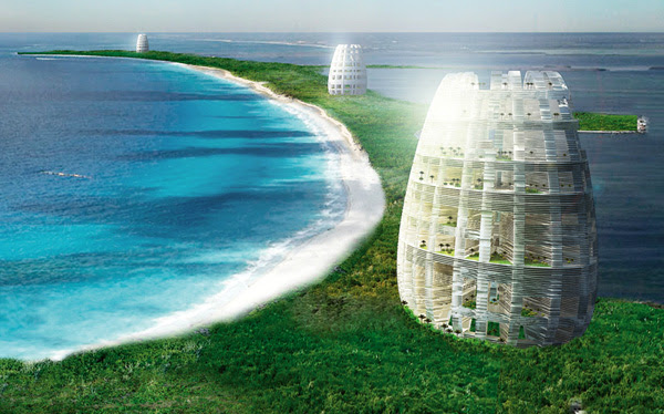 LO2P skyscraper is destined for New Delhi, the highly polluted capital city of India. Reminding you of the London Eye, this Ferris wheel like structure is built using old cars recycled for sourcing building material for the new structure. The surrounding air will be purified through a series of large-scale greenhouses that serve as filters. Another set of rotating filters capture the suspended particles in the air while the waste heat and carbon dioxide from the recycling center are used to grow plants that in turn produce bio-fuels. Second Place: Flat Tower by Yoann Mescam, Paul-Eric Schirr-Bonnans & Xavier Schirr-Bonnans The Flat Tower is a new high-density typology that features a medium-height dome structure with perforated cell-like skylights. The dome’s large surface area is the ideal location to harvest solar energy and collect rainwater. The structure houses community recreational facilities at the ground level, residential and office are located at the upper cells. An automated transportation system connects all the units, which are different shapes according to their program. This project has been designed for the city of Rennes, France, in an old industrial area but can be adapted to fit any location. Third Place: Re-imagining the Hoover Dam by Yheu-Shen Chua At the present moment one can visit the Hoover Dam and partake amenities like a viewing platform, a bridge, and a gallery. But the problem is that they are located at different areas of the site. With this redesign project, Yheu-Shen Chua brings together all the focal points of the amenities plus adds in a vertical aquarium to enthrall the visitors. Honorable Mentions NeoTax: Three-dimensional City Grid by Studio DMTW – Marc Anton Dahmen, Rene Lierschaft & Anna-Maria Wiedekind NeoTax is basically a three-dimensional city grid that is organized in a horizontal and vertical street grid. The network is based on a modular system where each module can be viewed as a separate quarter or neighborhood. PoroCity: Rehabilitation for Mumbai, India by Khushalani Associates – Rajiv Khushalani, Thomas Kariath & Mihir Sanganee Dharavi in Mumbai is one of the largest slums in the world and the Porocity is an effort to rehabilitate this area. The design is derived from a progressive subdivision of a right-angled Sierpenski’s Pyramid. Features include small self-divisible units that are 3m x 9m blocks, divided into collective housing units with north facing terraces, community spaces, small-scale infrastructure like clinics and supermarkets, educational institutions, factories, and offices. It is a car-free environment where means of vertical, horizontal and diagonal access is through elevators, moving walks, escalators, and funiculars. Tower for the Dead by Israel López Balan, Elsa Mendoza Andrés, Moisés Adrián & Hernández García This project is an underground vertical cemetery for Mexico City. Fish Tower by Hsing-O Chiang The Fish Tower is a prototype for a vertical fish farm that could be up to 30 times more efficient than traditional farms. It features a fisherman’s market and visitors center at ground level. The fish farms are designed based on the research and analysis of habitation and movement of specific fish species. Finally there is a section that is dedicated to R&D. Sports Tower by Sergiy Prokof`yev & Olga Prokof`yeva Sports Tower is a vertical complex that accommodates a variety of sports facilities in one site. RE:pH – Coastscraper by Gary Kellett The underpinning concept for the Coastalscraper is to reduce the acid levels of the oceans by adding fossilized Coccolithophores to the water. The perfect location for the project is the southeast corner of England, with a vast geological swathe of Coccolithophore (white chalk) spanning from the outskirts of London, and terminating in what is known as The White Cliffs of Dover. Iceberg Autonomy: Oil Recovery by Akram Fahmi The Iceberg Autonomy is an enclave, a seascraper of suspended oil collectors and separators – a new water-world in constant navigation. Tourist City Skyscraper by Francisco Villeda, Heechan Park, Wouter Dons & Sandra Fleischmann Tourist City is a proposed cluster of mega-structures in Cancun, Mexico that will keep a check on unplanned urban sprawling. Rhizome Tower: A Thousand Underground Plateaus by Enrico Tognoni, Federico Tinti & Davide Mariani The Rhizome Tower is an underground city and something out of a surreal fantasy! It’s essentially a ‘Groundscraper’ that harvests natural resources above and below ground while creating a new living typology. The idea is to cultivate a self-sufficient underground city and maybe even develop a nation or two in the process! The entire setup is divided into 4 layers that is organized around a central core. The first layer is above the surface and contains the recreational, and food production facilities, with agriculture fields, farms, and glasshouses. The entire façade is covered with photovoltaic cells to harvest solar energy and specific locations are also equipped with wind turbines. The second layer, approximately 60 levels, is the residential part, with a diverse range of living quarters according to family sizes. The third and fourth layers are used as offices, and service areas with the deepest part of the project dedicated to the study and harvest of geothermal energy. Borough no. 6 – New York City by John Houser Borough no. 6 occupies the space between 22nd and 14th street and 6th and 7th avenue in New York City. This grid-like structure houses infrastructure like train stations, parks, homes, offices etc. The ideal urban Utopia! Singapore’s Waterfront by Giorgi Khmaladze As the name suggests, Singapore’s Waterfront is intended as an extension of the financial district in Singapore. The structure emphasizes on the proper harvesting of resources like rainwater, natural ventilation and sunlight. The tower is positioned at a 20-degree angle to the site to face the nearby waterfront. 